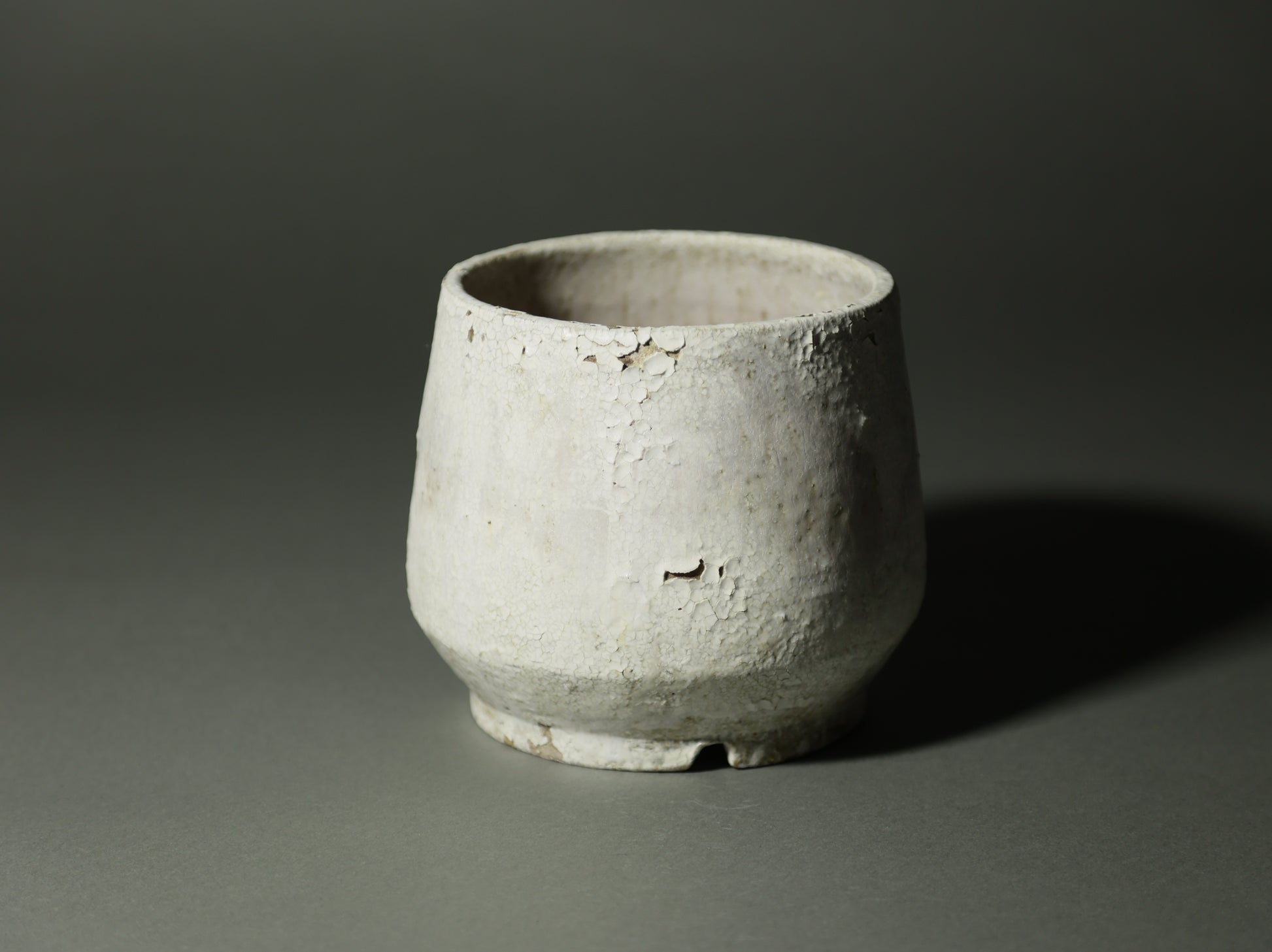 ヒビや釉薬の剥がれなどの現象を作品に取り入れ、古物のような風化した表現にアプローチしている。